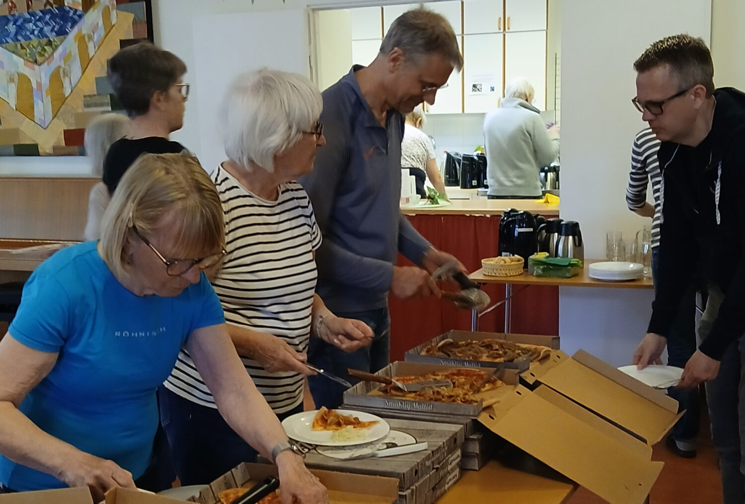 På fredag eftermiddag fylldes Hagakyrkan av städklädda församlingsmedlemmar som fräschade upp hela kyrkan – både inne och ute. Städningen fick ett trevligt avbrott när vännerna från Björkhaga Pizzeria bjöd alla på pizza. Stort tack för det.